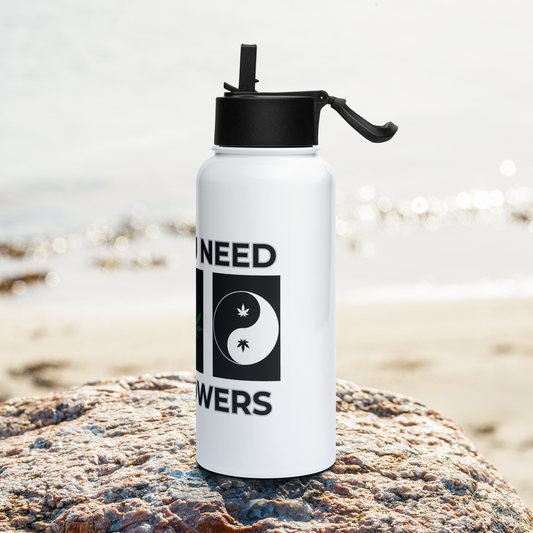 "All You Need Are Flowers" Stainless Steel Water Bottle With Straw Lid