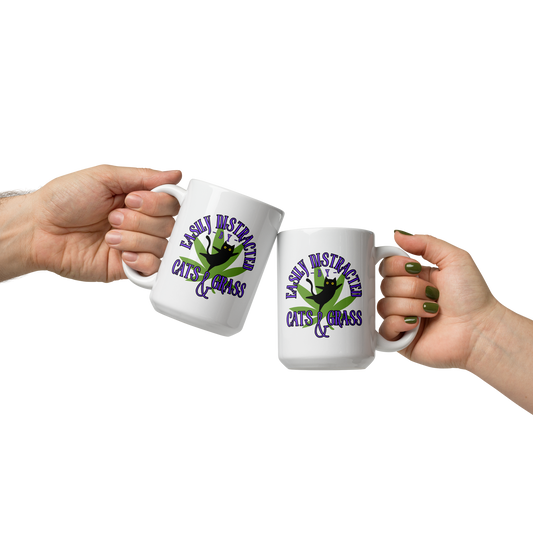 "Easily Distracted By Cats & Grass" Glossy Mug - White