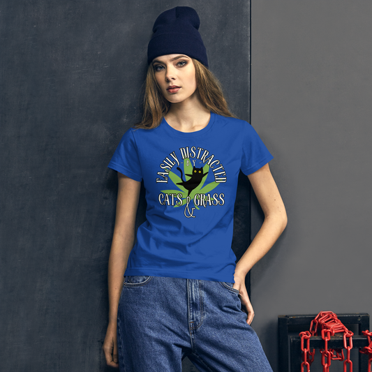 "Easily Distracted By Cats & Grass" Ladies’ Relaxed Fit V-Neck Tee Shirt